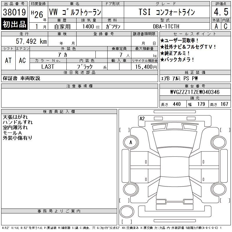 VOLKSWAGEN GOLF TOURAN - лот 38019