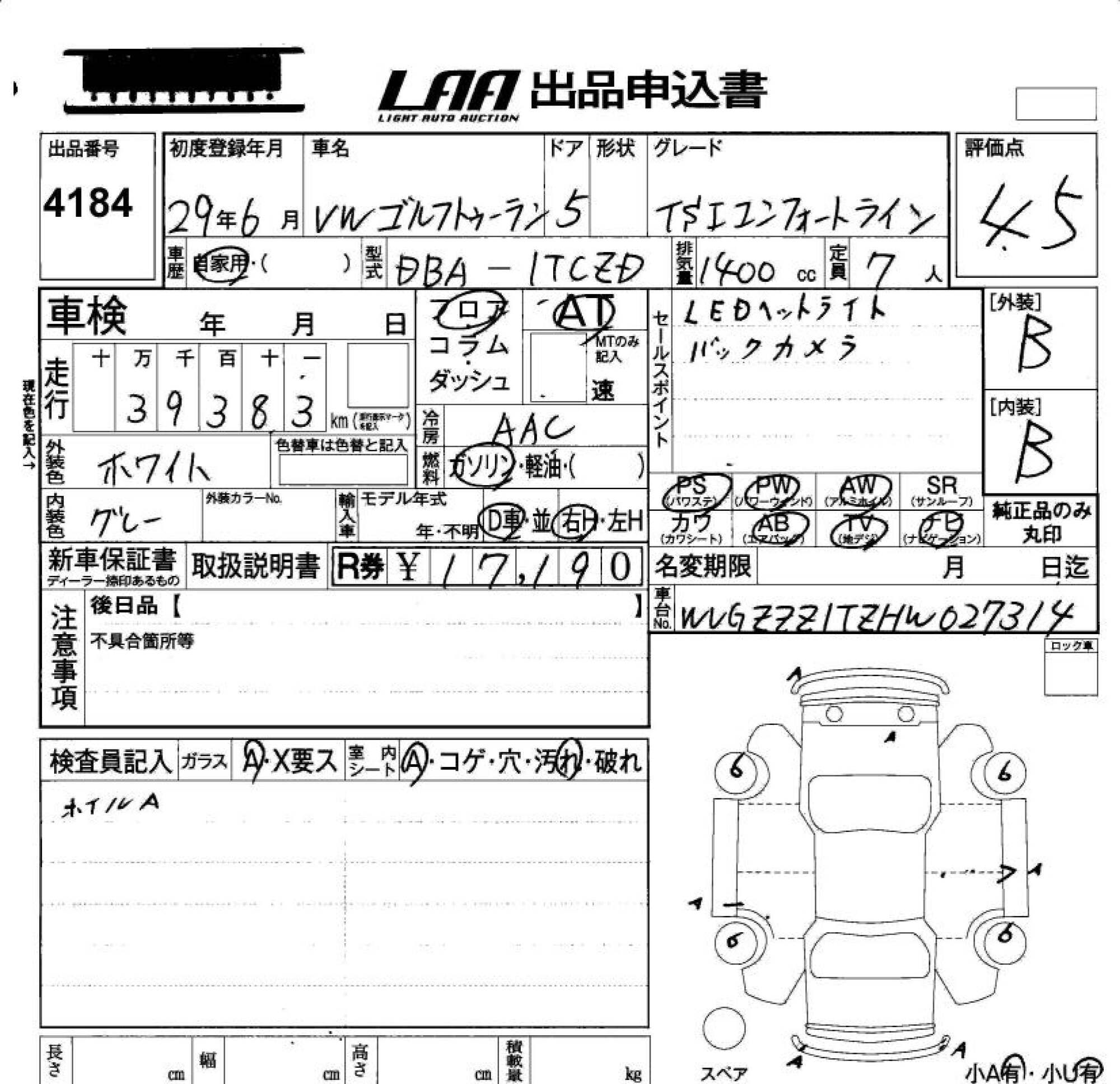 VOLKSWAGEN GOLF TOURAN - лот 4184