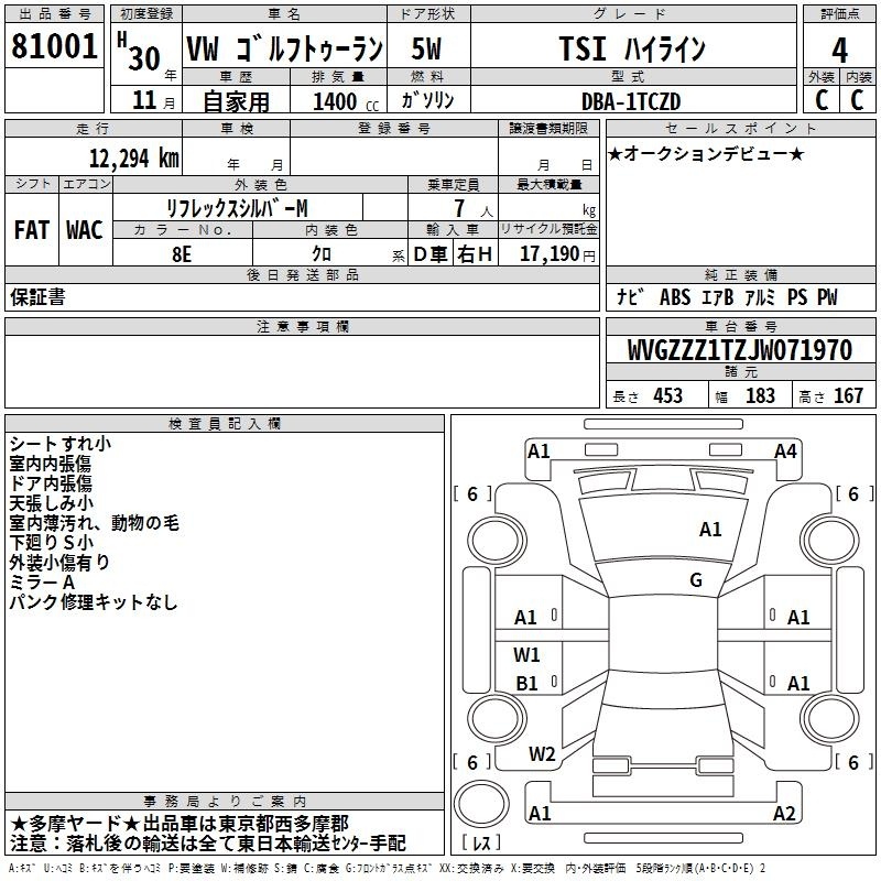 VOLKSWAGEN GOLF TOURAN - лот 81001