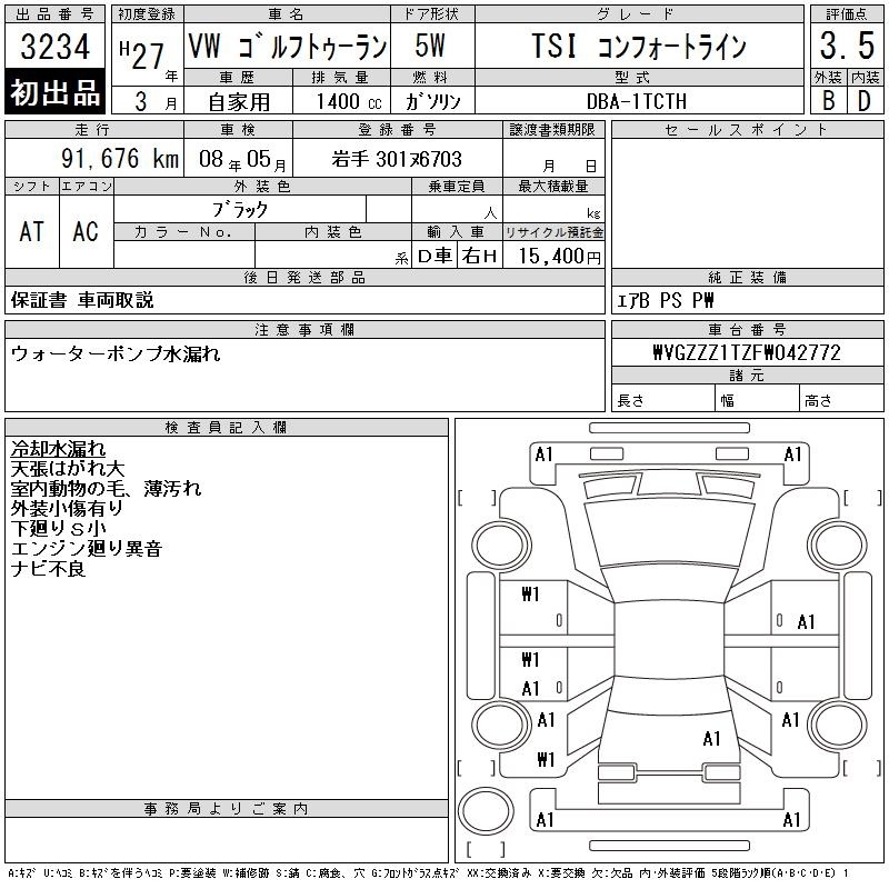 VOLKSWAGEN GOLF TOURAN - лот 3234