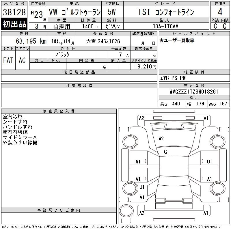 VOLKSWAGEN GOLF TOURAN - лот 38128