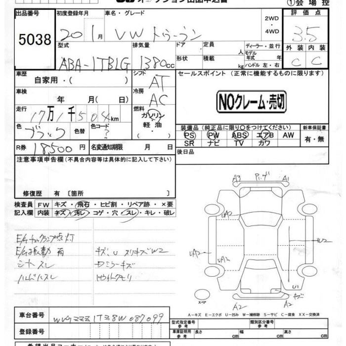 VOLKSWAGEN GOLF TOURAN - лот 5038
