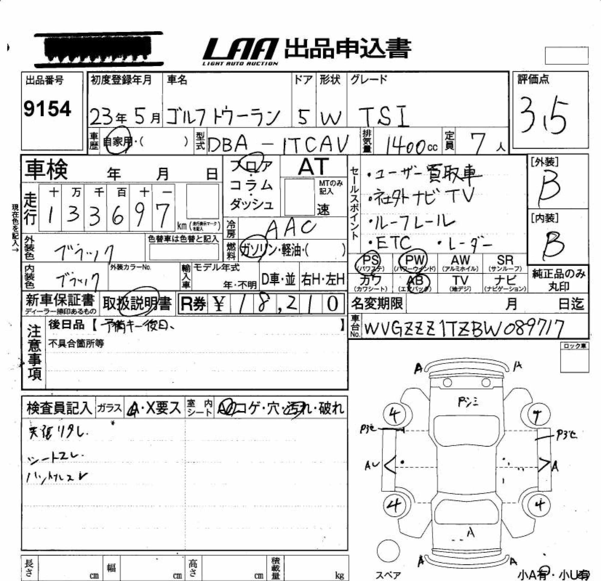 VOLKSWAGEN GOLF TOURAN - лот 9154