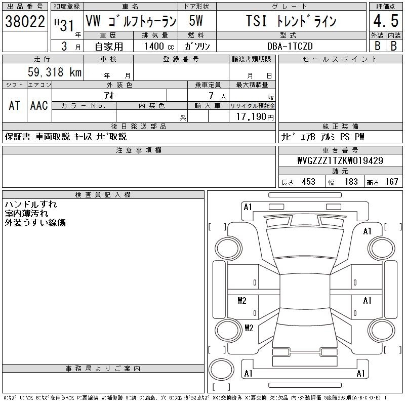 VOLKSWAGEN GOLF TOURAN - лот 38022