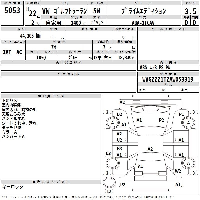 VOLKSWAGEN GOLF TOURAN - лот 5053