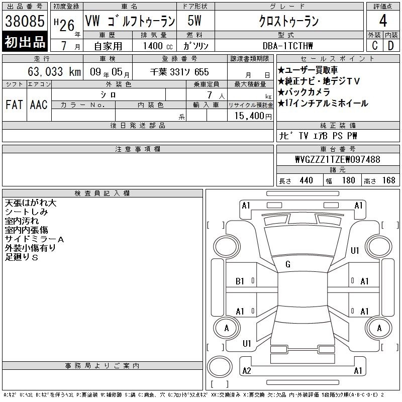 VOLKSWAGEN GOLF TOURAN - лот 38085