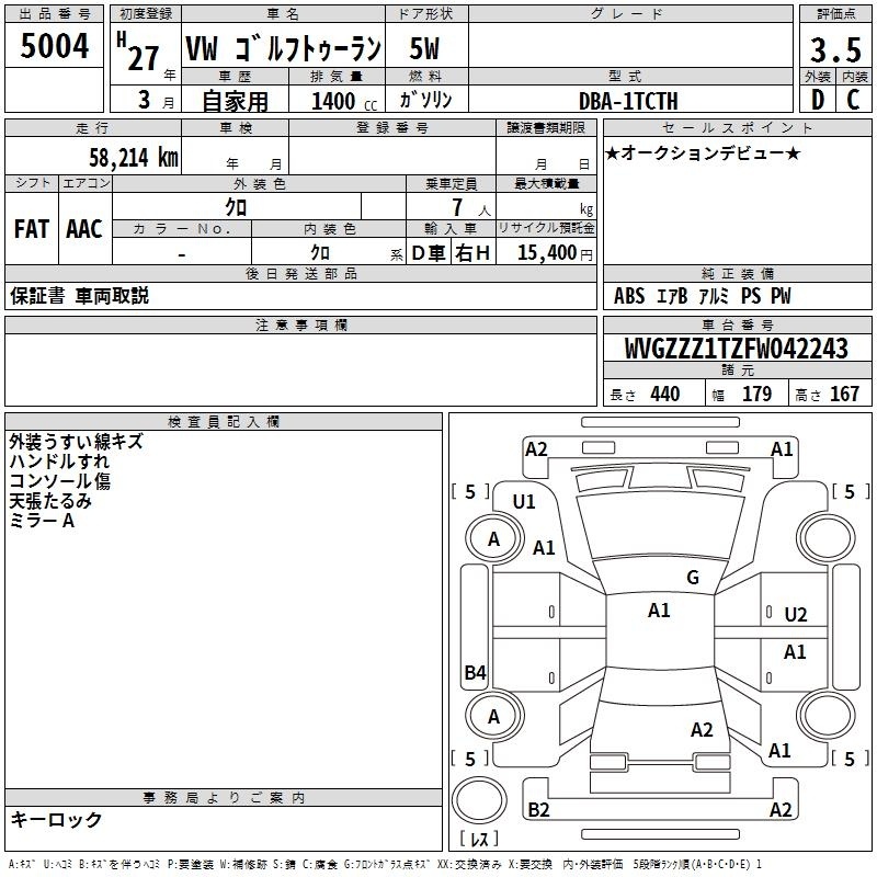 VOLKSWAGEN GOLF TOURAN - лот 5004