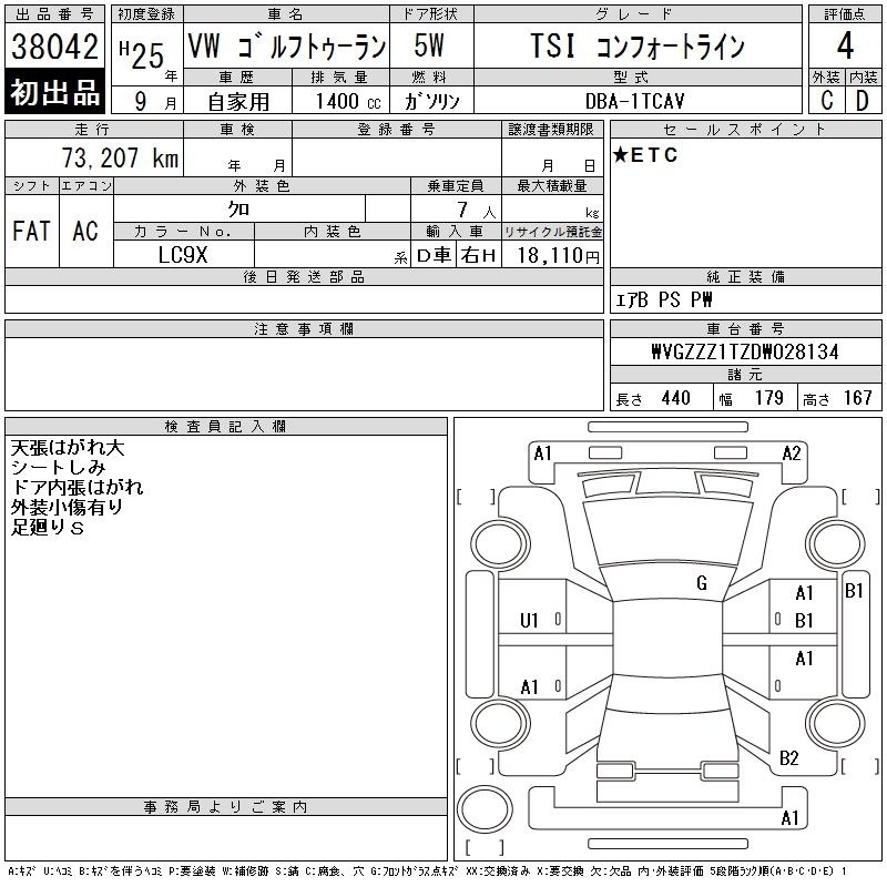 VOLKSWAGEN GOLF TOURAN - лот 38042