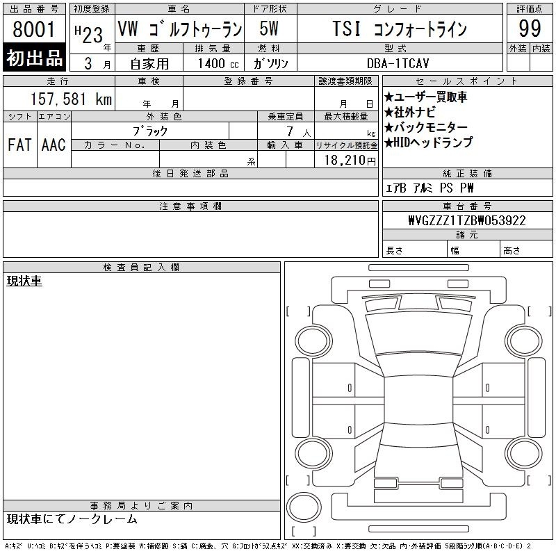 VOLKSWAGEN GOLF TOURAN - лот 8001