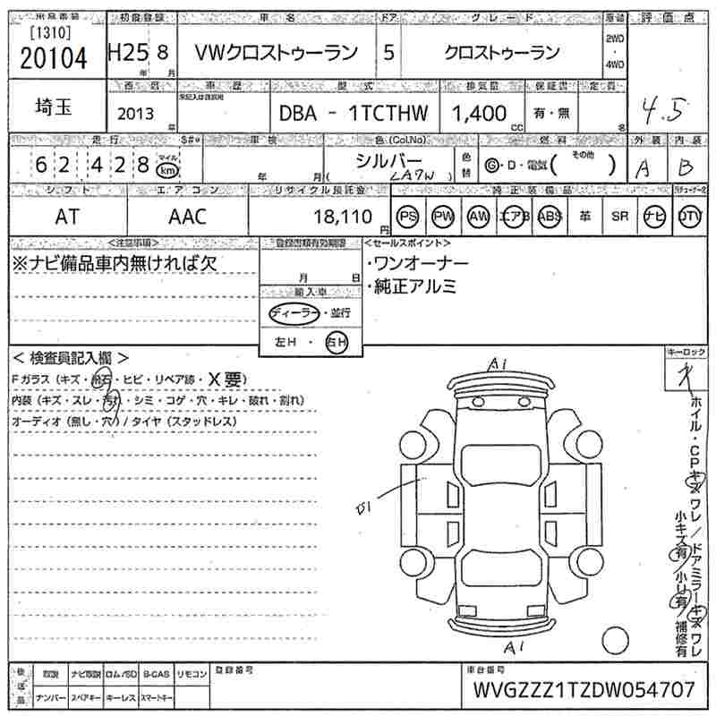 VOLKSWAGEN GOLF TOURAN - лот 20104
