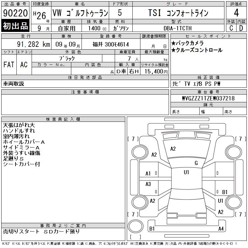 VOLKSWAGEN GOLF TOURAN - лот 90220
