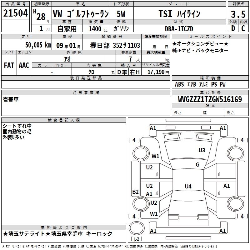 VOLKSWAGEN GOLF TOURAN - лот 21504