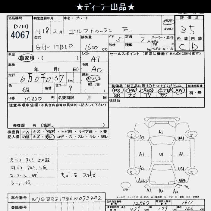 VOLKSWAGEN GOLF TOURAN - лот 4067