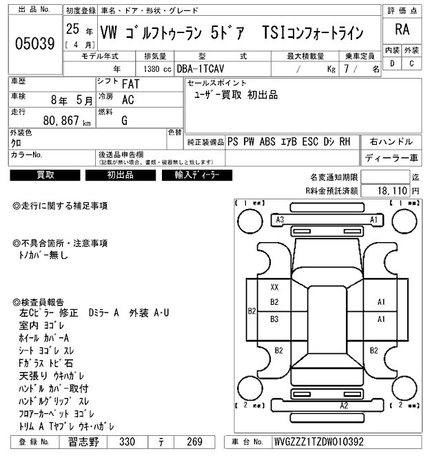 VOLKSWAGEN GOLF TOURAN - лот 5039