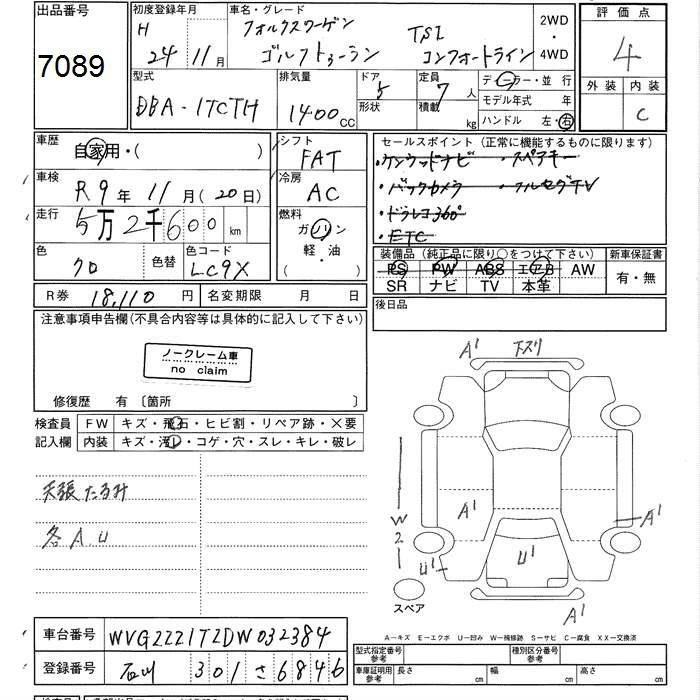 VOLKSWAGEN GOLF TOURAN - лот 7089
