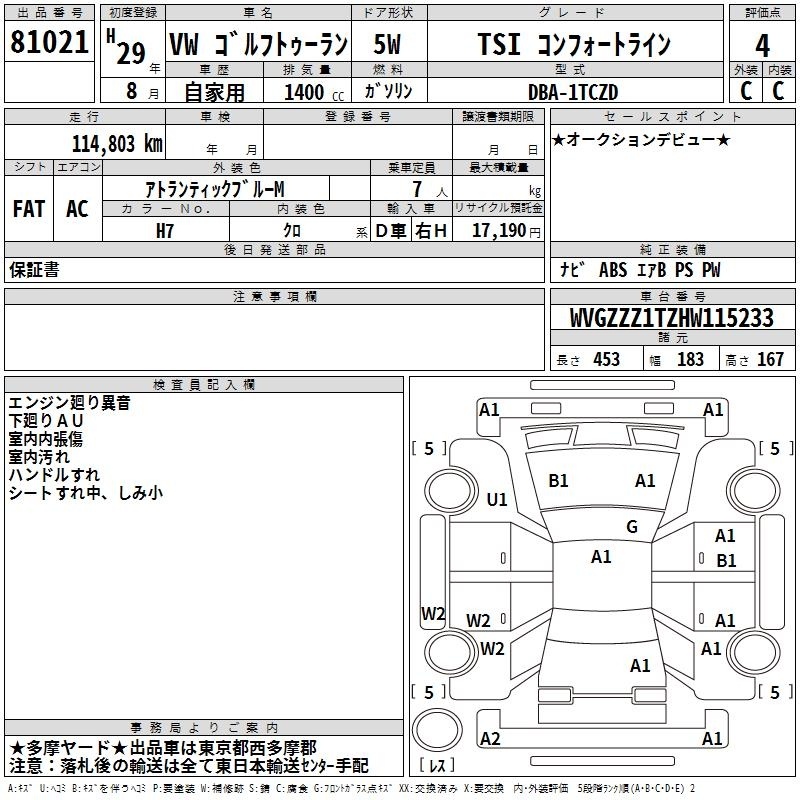 VOLKSWAGEN GOLF TOURAN - лот 81021