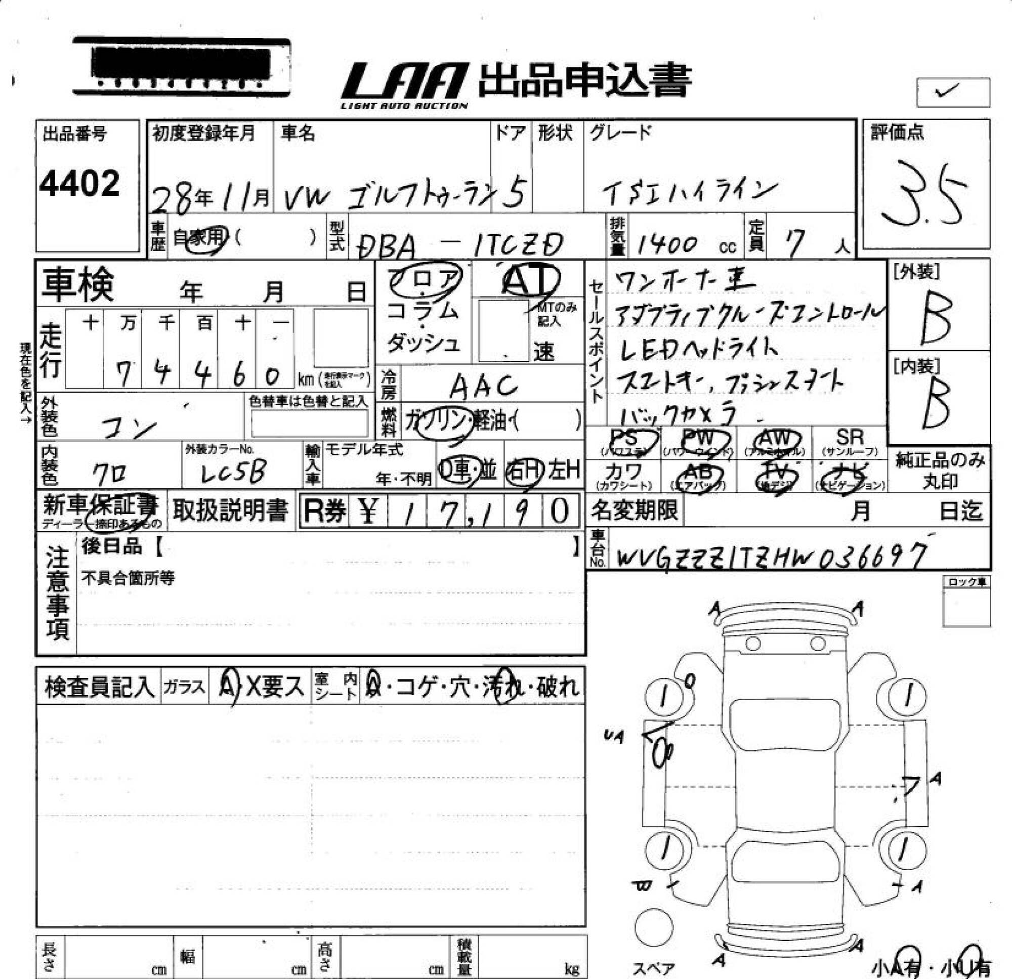 VOLKSWAGEN GOLF TOURAN - лот 4402