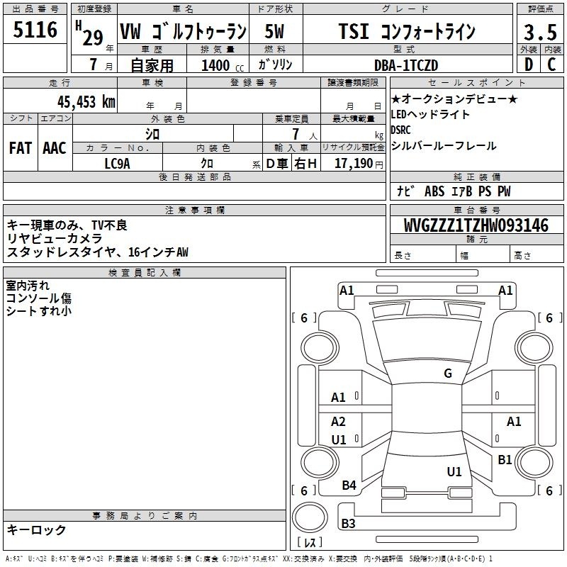 VOLKSWAGEN GOLF TOURAN - лот 5116