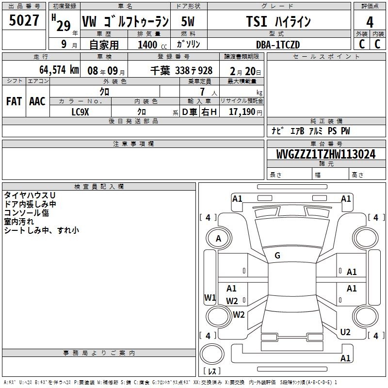 VOLKSWAGEN GOLF TOURAN - лот 5027