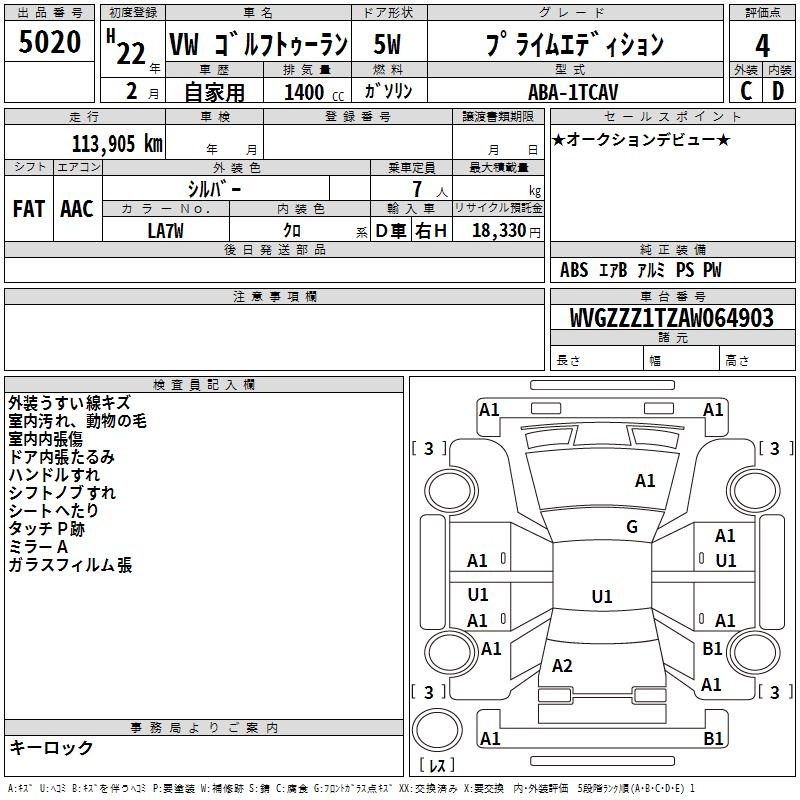 VOLKSWAGEN GOLF TOURAN - лот 5020