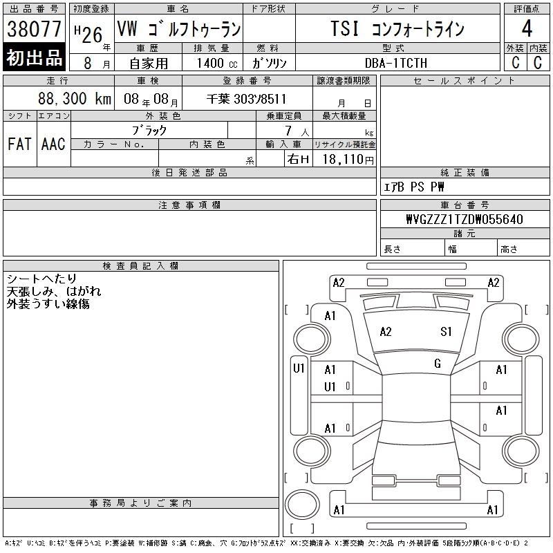 VOLKSWAGEN GOLF TOURAN - лот 38077