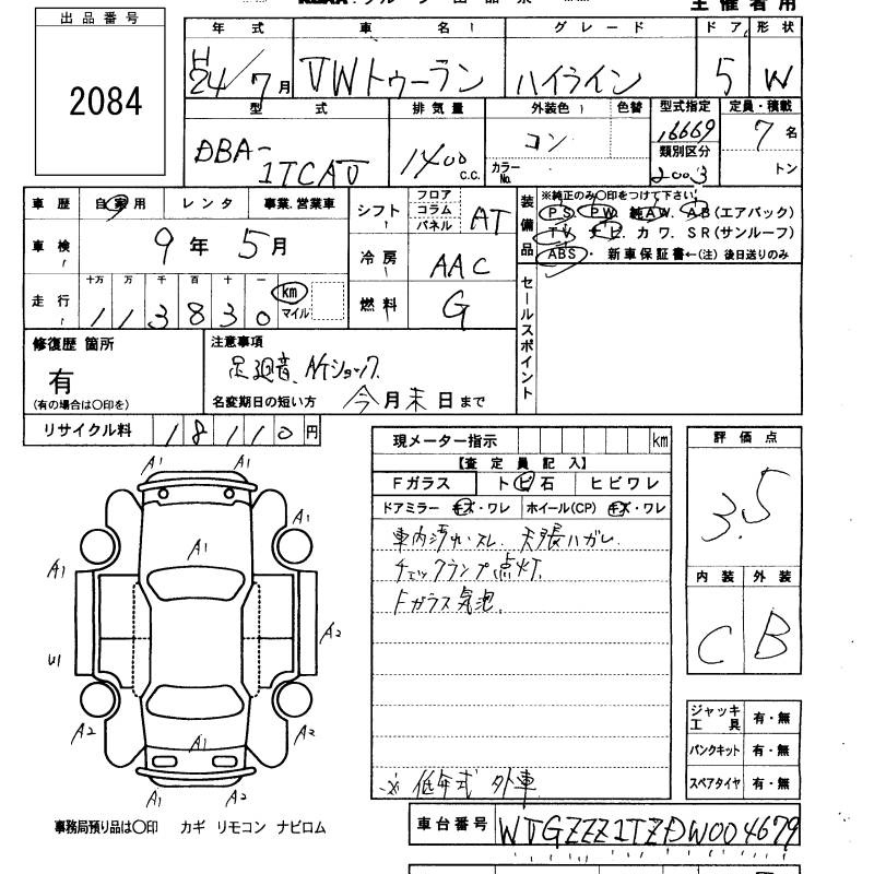 VOLKSWAGEN GOLF TOURAN - лот 2084