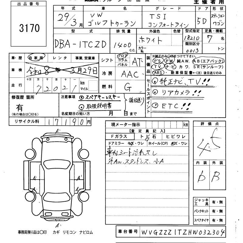 VOLKSWAGEN GOLF TOURAN - лот 3170