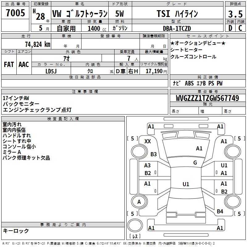VOLKSWAGEN GOLF TOURAN - лот 7005