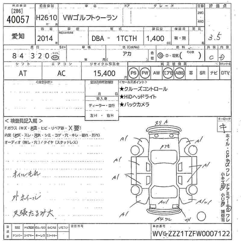 VOLKSWAGEN GOLF TOURAN - лот 40057