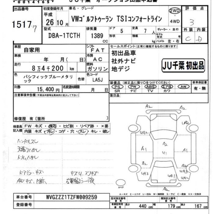 VOLKSWAGEN GOLF TOURAN - лот 1517