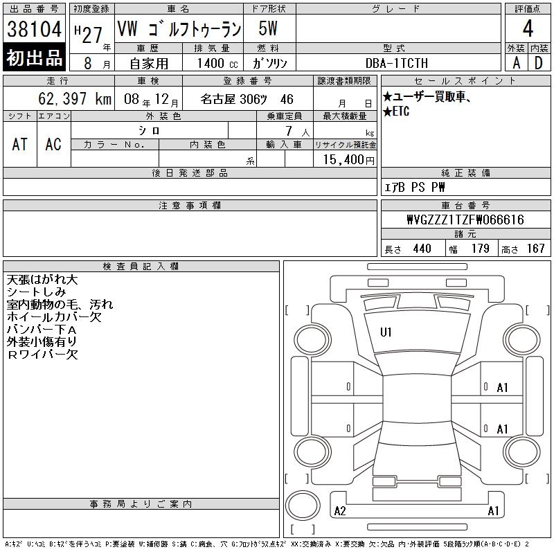 VOLKSWAGEN GOLF TOURAN - лот 38104