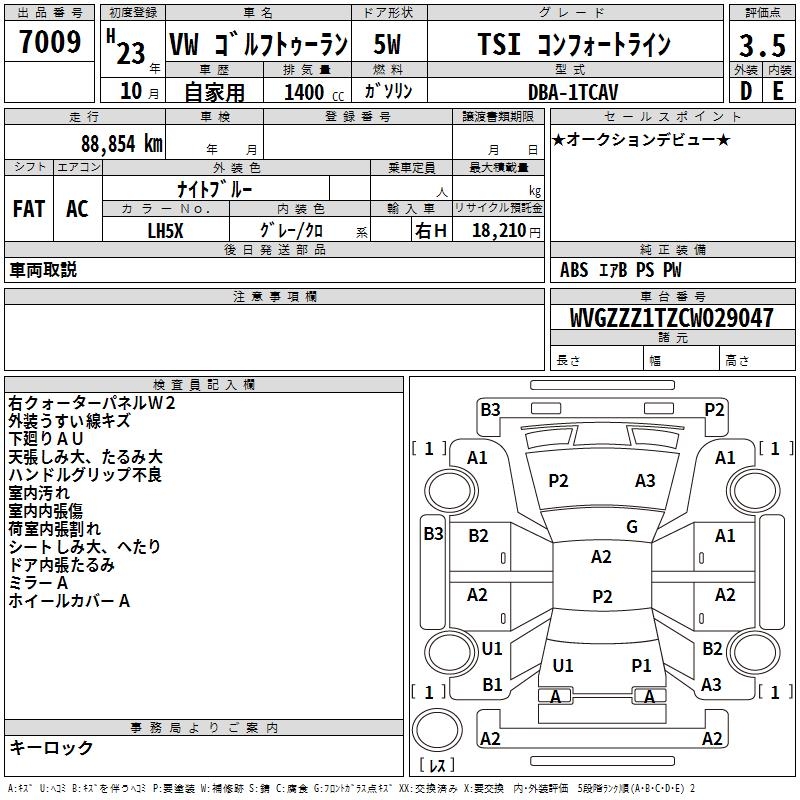 VOLKSWAGEN GOLF TOURAN - лот 7009