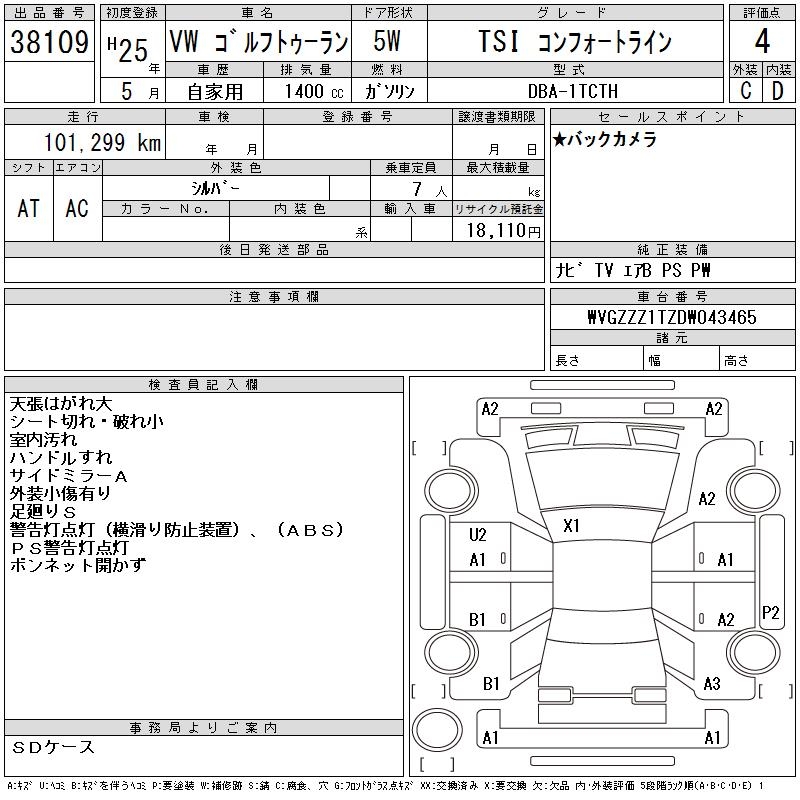 VOLKSWAGEN GOLF TOURAN - лот 38109