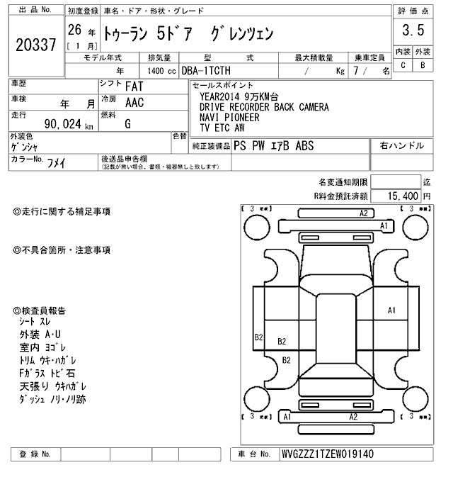 VOLKSWAGEN GOLF TOURAN - лот 20337