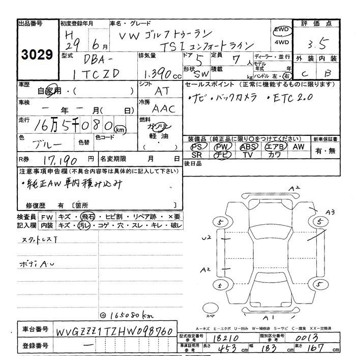 VOLKSWAGEN GOLF TOURAN - лот 3029