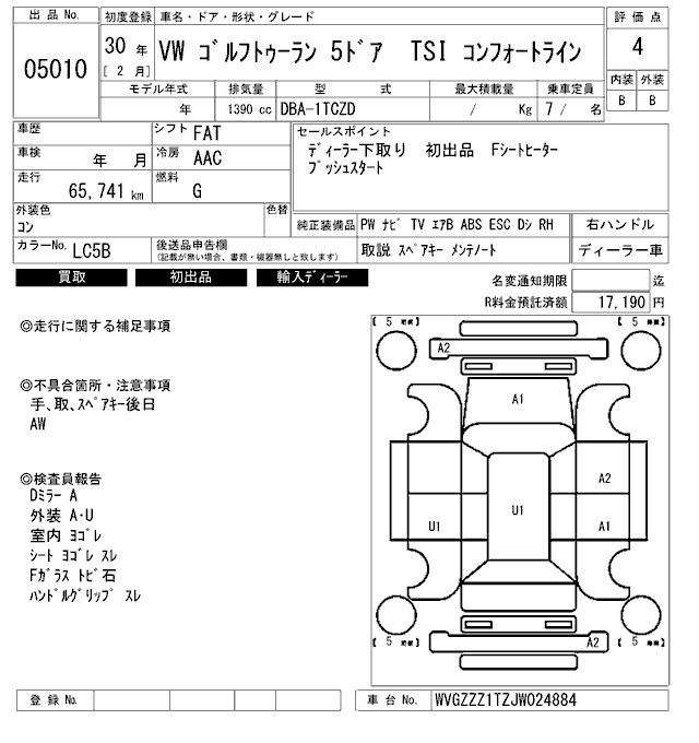 VOLKSWAGEN GOLF TOURAN - лот 5010