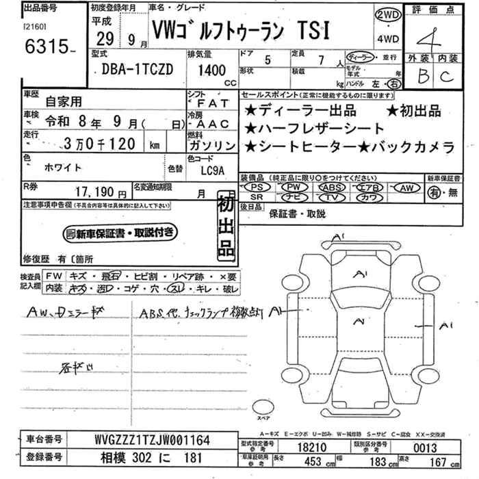 VOLKSWAGEN GOLF TOURAN - лот 6315