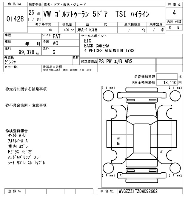 VOLKSWAGEN GOLF TOURAN - лот 1428