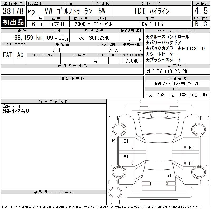 VOLKSWAGEN GOLF TOURAN - лот 38178