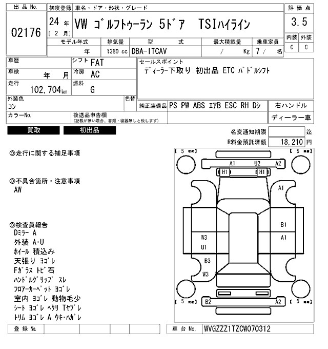 VOLKSWAGEN GOLF TOURAN - лот 2176
