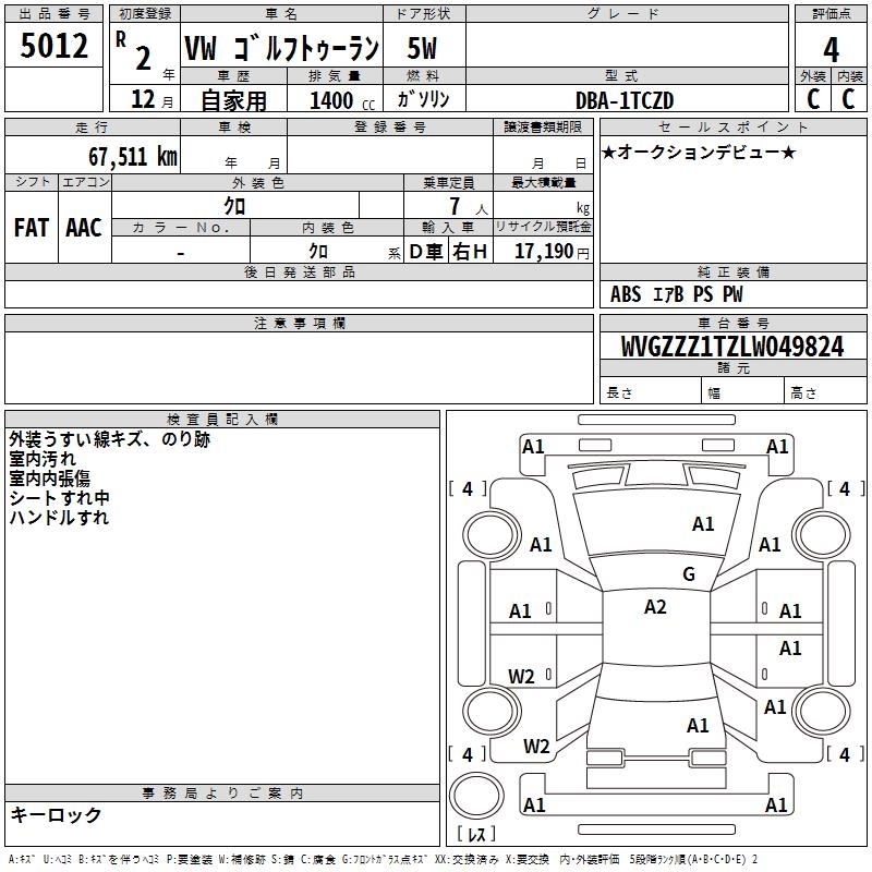 VOLKSWAGEN GOLF TOURAN - лот 5012