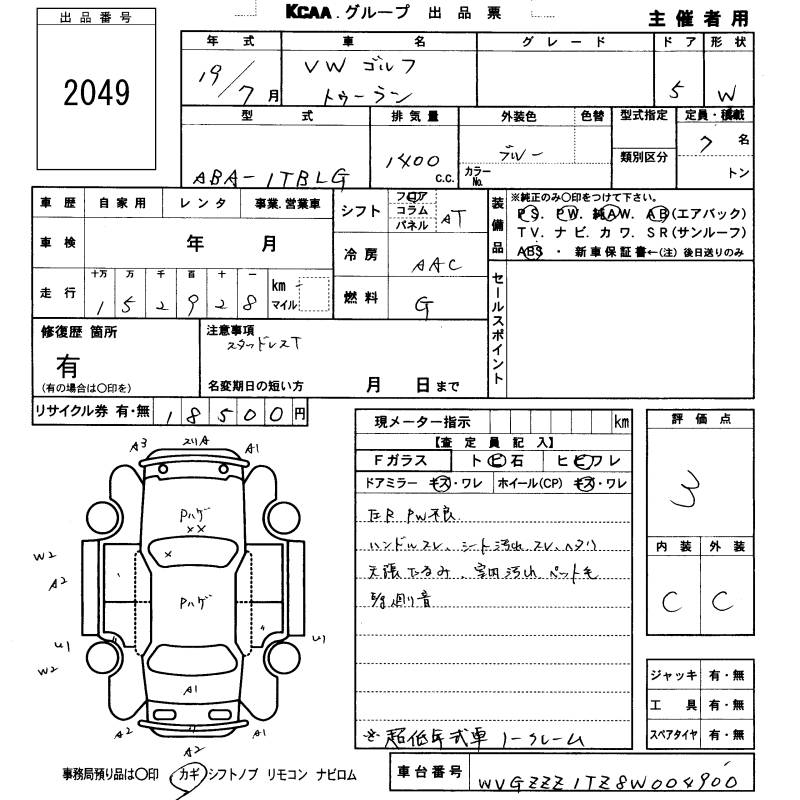 VOLKSWAGEN GOLF TOURAN - лот 2049