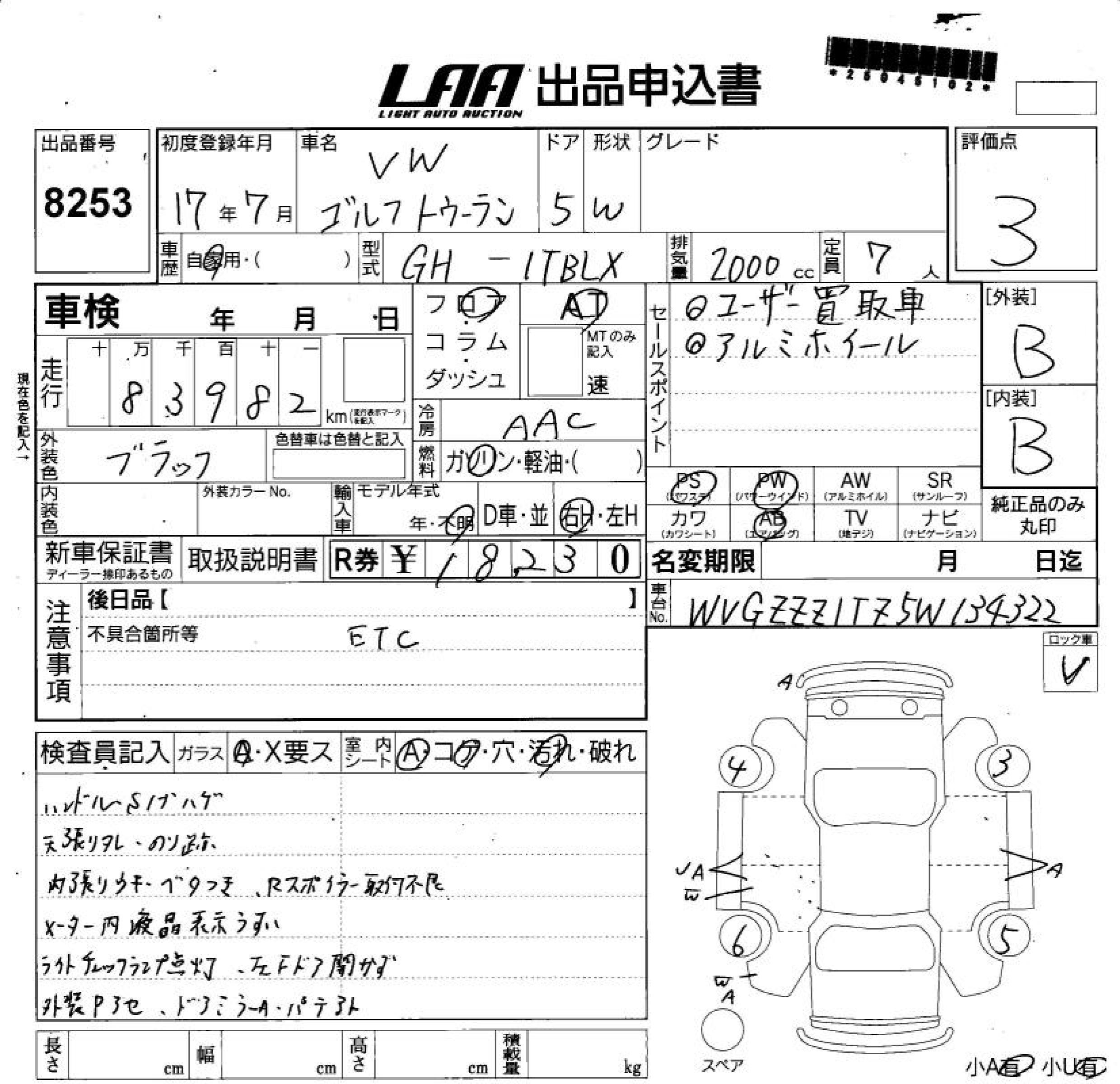 VOLKSWAGEN GOLF TOURAN - лот 8253