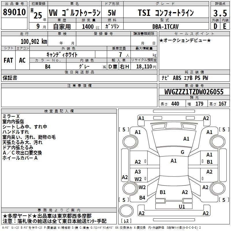 VOLKSWAGEN GOLF TOURAN - лот 89010