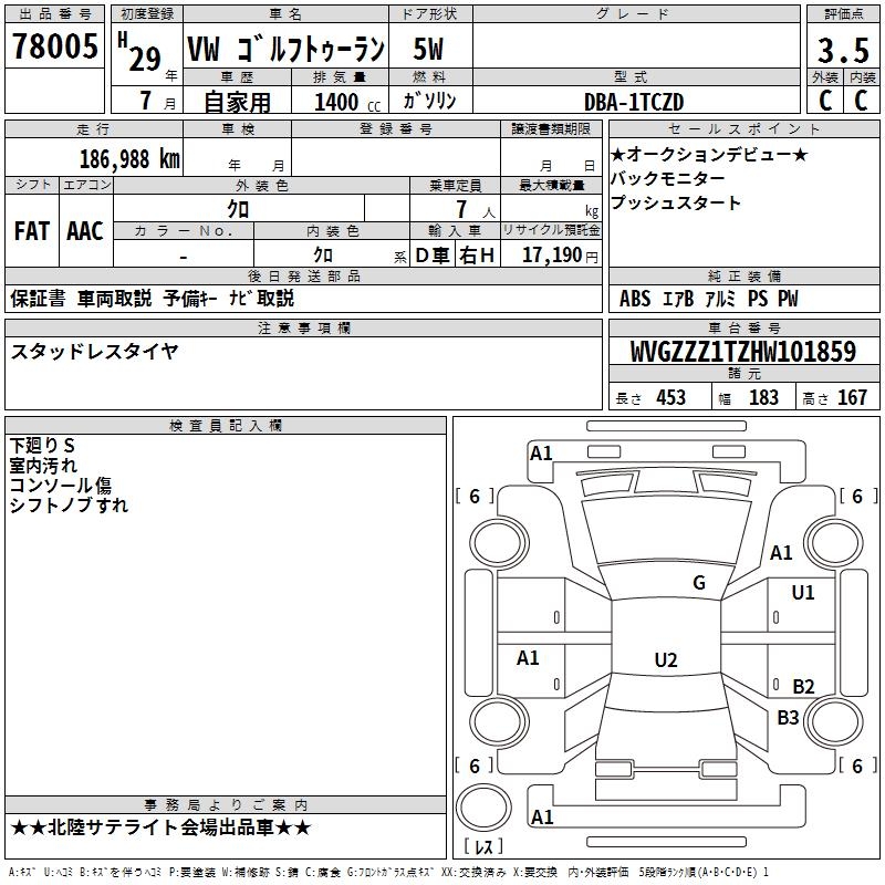 VOLKSWAGEN GOLF TOURAN - лот 78005