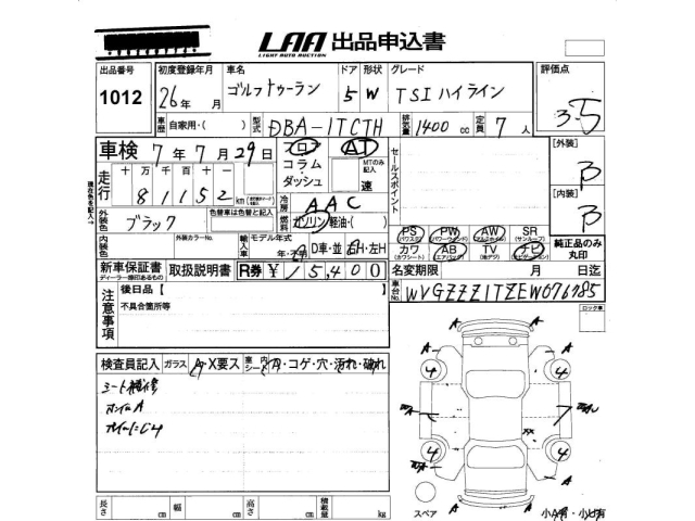 VOLKSWAGEN GOLF TOURAN - лот 1012