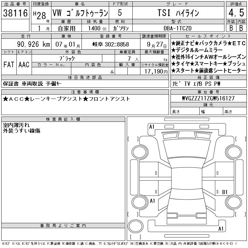 VOLKSWAGEN GOLF TOURAN - лот 38116