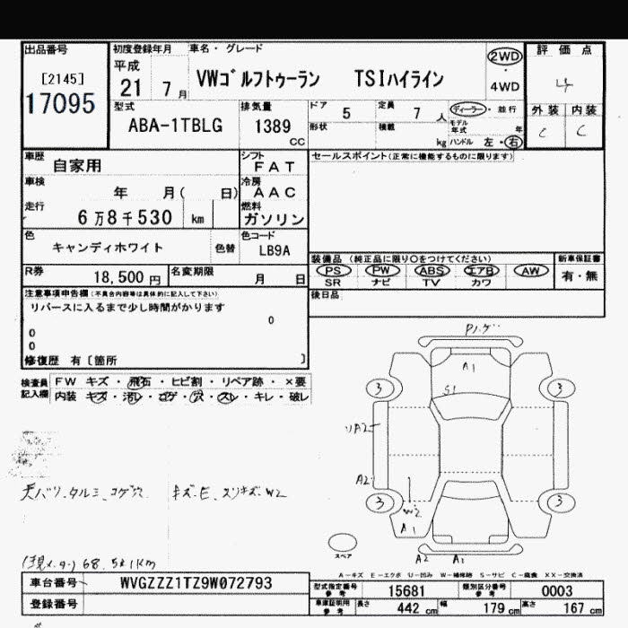 VOLKSWAGEN GOLF TOURAN - лот 17095