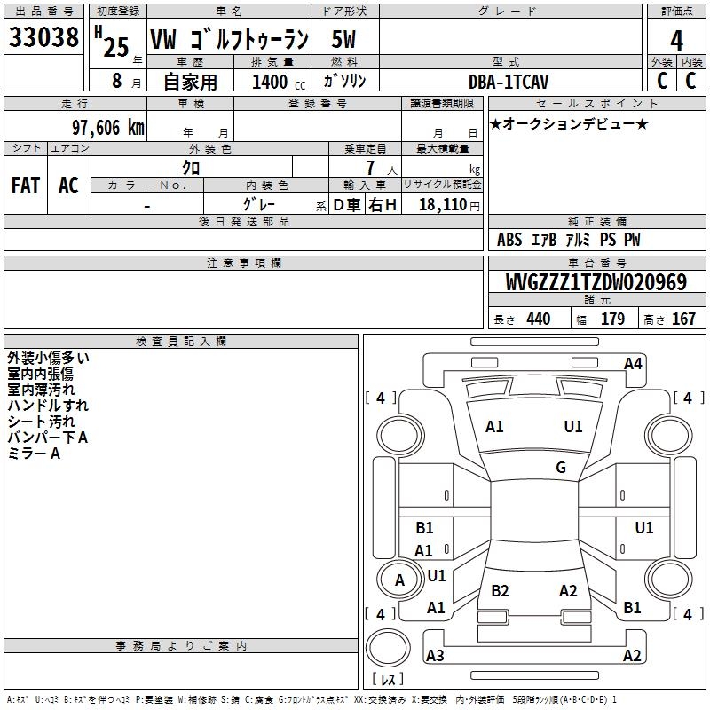 VOLKSWAGEN GOLF TOURAN - лот 33038