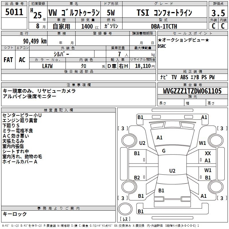 VOLKSWAGEN GOLF TOURAN - лот 5011